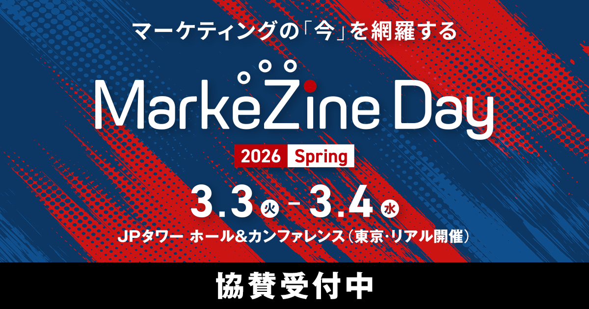 MarkeZine Dayは、マーケティング専門メディアである『MarkeZine』のネットワークを最大限に活かしたイベントです(2007年9月に第1回を開催)。業界の最新動向はもちろん、新しいスタンダードとなりうる手法や普遍的なノウハウ、成功事例がキーパーソンたちから共有されます。デジタルを中心とした新しいマーケティングを習得・実践していきたいとお考えの方は、ぜひご参加ください。